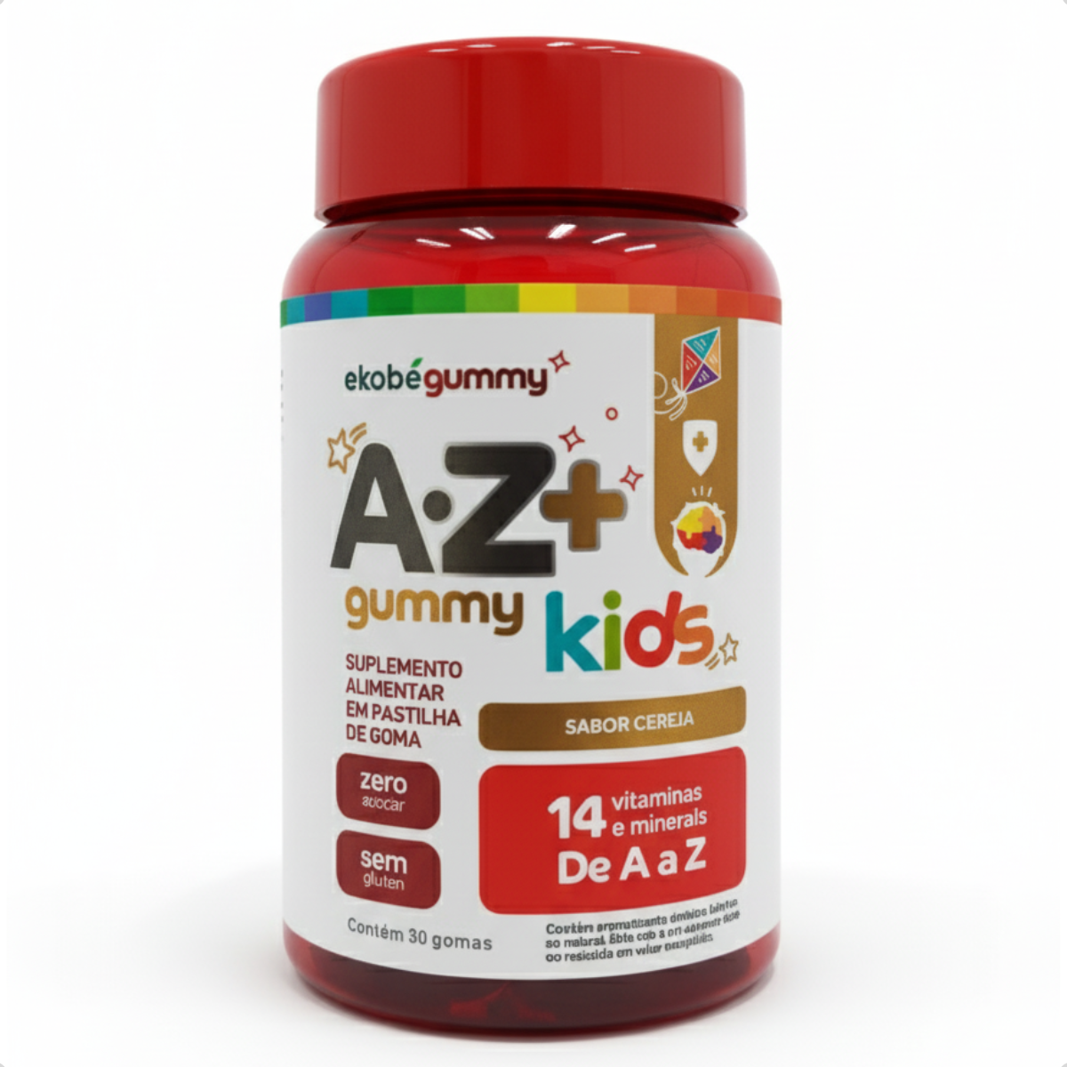 Garanta as vitaminas essenciais para o desenvolvimento com o AZ+ Kids Gummy Ekobé — nutrição e diversão em cada goma!