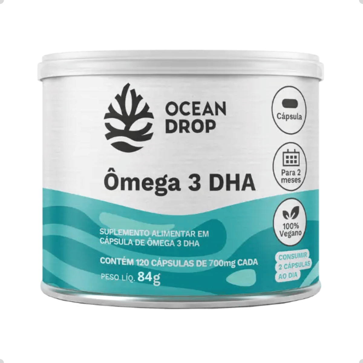 O Ômega 3 DHA 700 mg da Ocean Drop é formulado com óleo de microalgas altamente purificado, oferecendo DHA em concentração elevada por cápsula. Diferente das versões tradicionais derivadas de peixes, o DHA de microalgas é 100% vegetal, sustentável, livre de metais pesados e com excelente biodisponibilidade. Esse ácido graxo essencial está relacionado ao suporte das funções cerebrais, visão, equilíbrio metabólico e integridade das células. Com 120 cápsulas, o produto fornece praticidade para uso diário, mantendo uma rotina de suplementação segura e de qualidade.