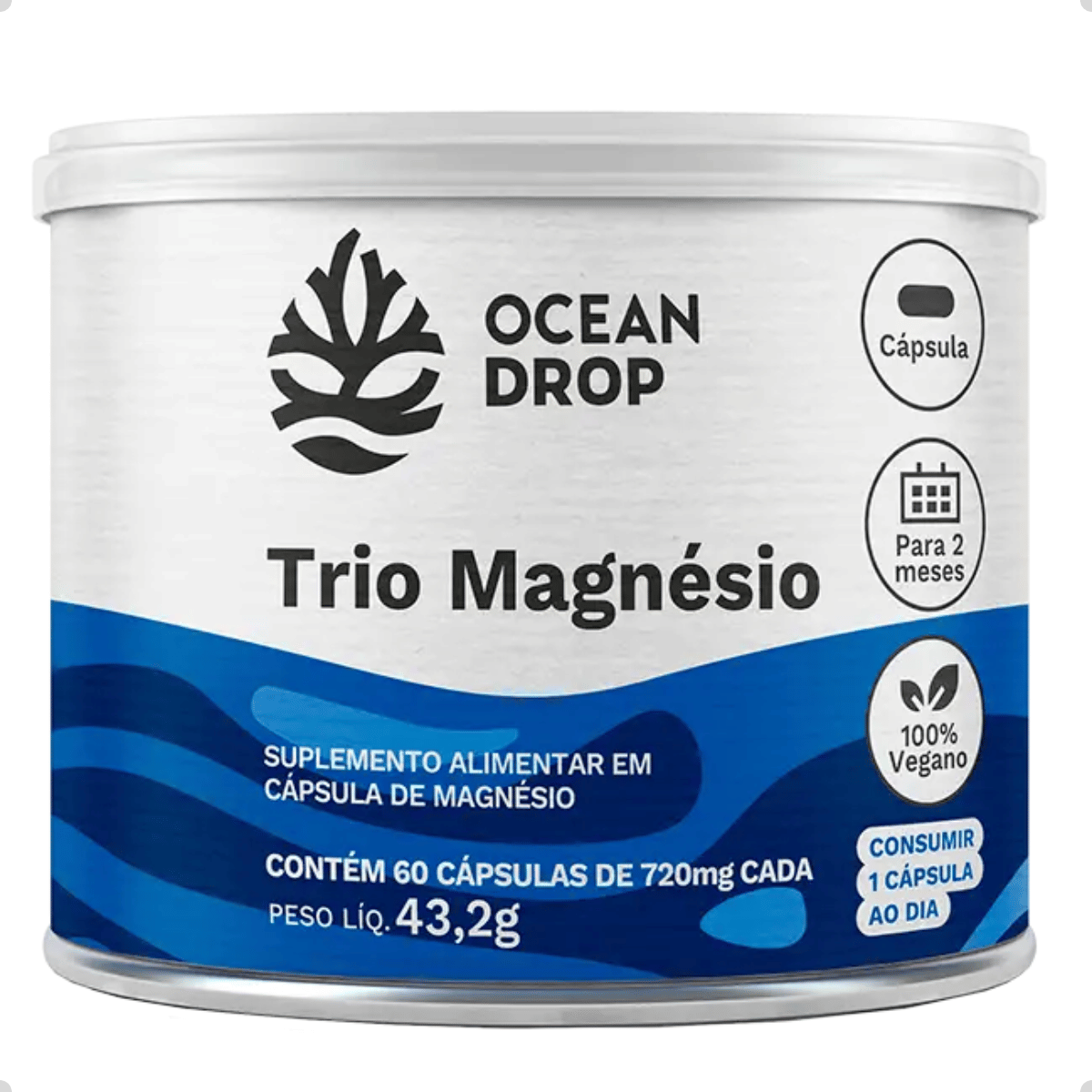 O Trio Magnésio da Ocean Drop reúne três formas de magnésio amplamente reconhecidas por sua alta biodisponibilidade: bisglicinato de magnésio, cloreto de magnésio PA e malato de magnésio. Essa fórmula foi desenvolvida para oferecer absorção superior, equilíbrio eletrolítico e suporte às funções musculares, ósseas e neurológicas. Com 60 cápsulas veganas e sem glúten, o suplemento é ideal para quem busca bem-estar diário, suporte ao relaxamento muscular e auxílio ao metabolismo energético de forma prática e segura.